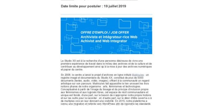 OFFRES D’EMPLOI | Joignez-vous au Studio XX! 💫